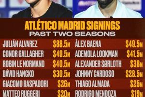 据BR统计,马竞过去两个赛季引援花费总计达4.87亿美元,引进了阿尔瓦雷斯、加拉格尔、勒诺尔芒、汉茨科等人。
