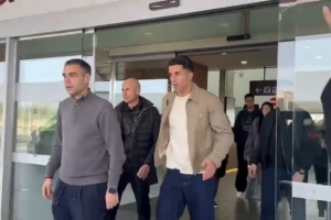 科贝电台在社交媒体上晒出了坎塞洛抵达后的视频,并配文写道:“坎塞洛租借加盟巴塞罗那,租期到6月份。”