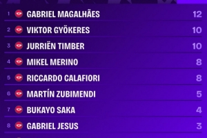 Squawka指出,阿森纳本赛季联赛头球打进11球,英超球队之中最多,这是马杜埃凯职业生涯至今在英超攻入的第3粒头球,此前两粒头球进球来自于2024年对阵西汉姆、2025年对阵狼队的比赛。