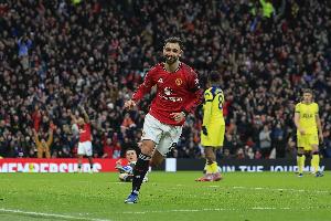 在早早被拉克鲁瓦头球破门后,红魔重整旗鼓,并在第57分钟取得突破,拉克鲁瓦因在禁区内拉倒库尼亚被罚下场。B费主罚随后获得的点球稳稳命中,骗过迪恩·亨德森将比分扳平,这位葡萄牙人仅在七分钟后便又送出助攻,帮助球队完成了逆转。