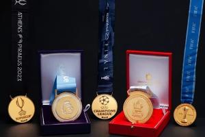 奖牌包含曼城2022/23赛季夺得的英超、足总杯、欧冠冠军奖牌,以及另外两枚曼城在2023年夺得的欧超杯和世俱杯冠军奖牌。